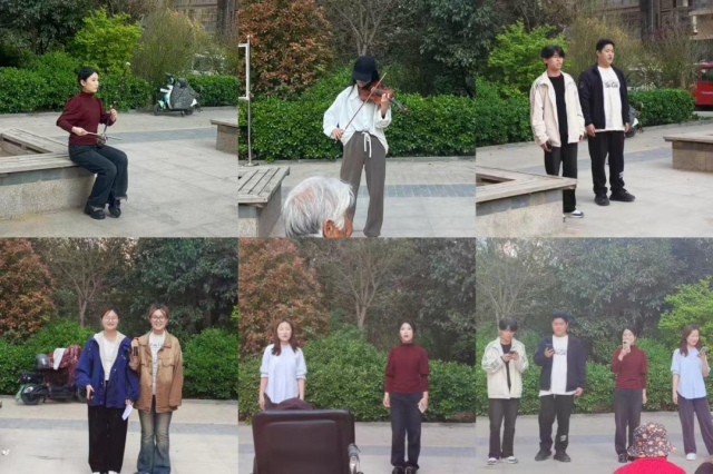 活动中,志愿者们满怀热情,积极发挥自己的专业优势,为龙湾社区群众带来了一系列的乐器演奏及歌曲演唱等精彩表演。此次演出在二胡独奏曲《豫北叙事曲》和小提琴独奏曲《梁祝》中拉开帷幕,悠扬的琴声飘扬四方,给居民们带来了快乐与温暖;随后《故乡的小路》《强军战歌》《凤求凰》等歌曲的演唱,激发了观众们热爱祖国、热爱家乡的情感;最后一首《上春山》更是展现出了VSport体育学子们的积极向上的精神面貌。此次志愿服务活动受到了在场群众们的一致好评。
