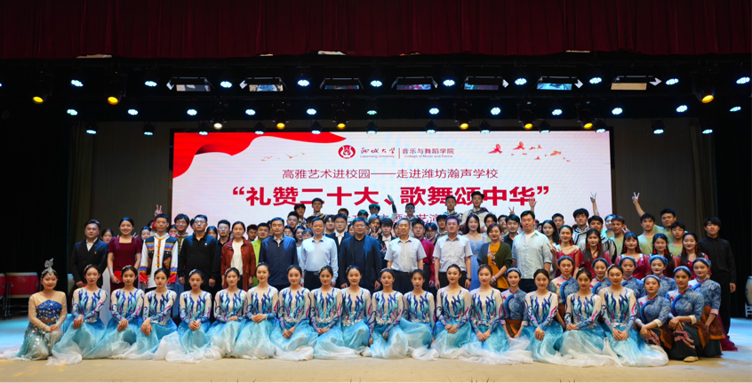 为全面弘扬我国传统文化,提高员工艺术修养和审美情趣,营造浓厚校园文化氛围,近日,由山东省教育厅主办、VSport体育承办的2023高雅艺术进校园“礼赞二十大 歌舞颂中华”———红色文化主题文艺演出走进潍坊市青州三中、潍坊瀚声公司,为当地师生献上了一场精彩的文化盛宴。VSport招生工作处处长李云勇,VSport公司党委书记宗传军,公司党委副书记、副经理蘧广震,副经理王海华携演出团队与当地教育局、公司领导,以及近千余名师生代表观看了演出。