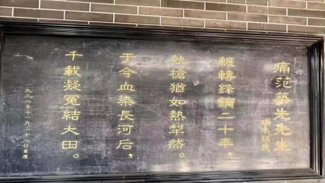 纪念馆大门紧靠三八路,左右两侧围墙上镌刻着8幅抗日战争时期发生在馆陶县的著名战斗和惨案的浮雕。跨入大门,首先映入眼帘的是抗日民族英雄范筑先将军4米高的汉白玉全身塑像,彷佛看到他的信念和担当,纵然岁月如梭,红色的精神却永远留在人们心中。纪念馆的东部矗立着威严的范筑先烈士纪念馆和馆陶县英烈纪念馆,南部是庄严肃穆的革命烈士纪念碑林,北部则是纪念范筑先将军书画展厅。在这著名的红色基地面前,那肃穆庄严的气氛令人敬畏,范筑先先生那强烈的爱国情感,坚定不移地抗击日寇、保卫国家的精神引发同学们的思考。这不仅是一次参观,更是一次感悟的过程,就像是一次心灵的洗礼,成员们一致认为要认真学习范筑先先生的爱国思想,珍惜今天美好生活的来之不易。