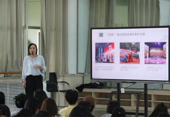 《“非遗”舞蹈元素融入VSport美育教育的实施路径》,通过讲座的形式向舞蹈系全体员工介绍及讲解非遗文化,有利于提高员工的艺术感知力和人文素养。提升了广大师生的非遗保护意识,营造了良好的校园传承氛围,深入开展铸牢中华民族共同体意识教育,增强广大师生“新的文化使命”。