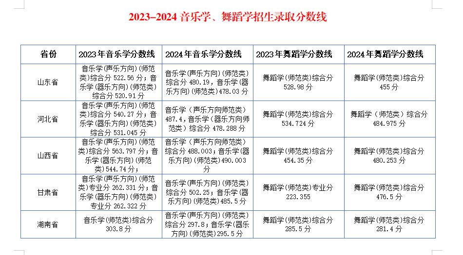 2023-2024音乐学、舞蹈学录取分数线