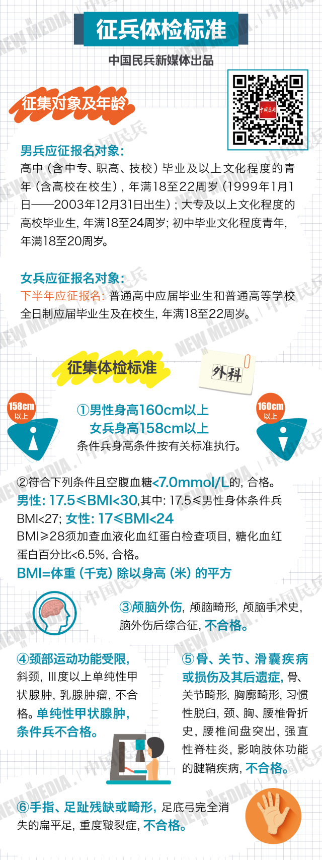 下半年应征报名:普通高中应届毕业生和普通高等公司全日制应届毕业生及在校生,年满18至22周岁。